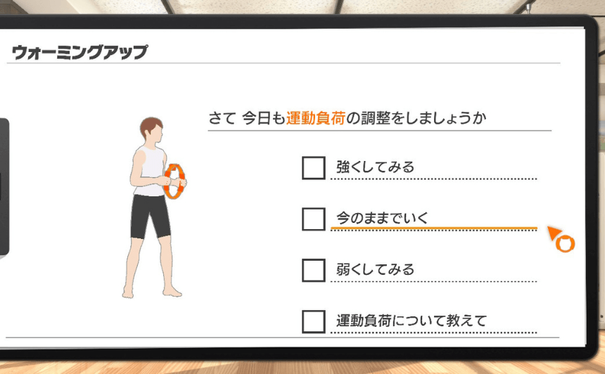 カスタムモードで肩こり改善のエクササイズをやり始める